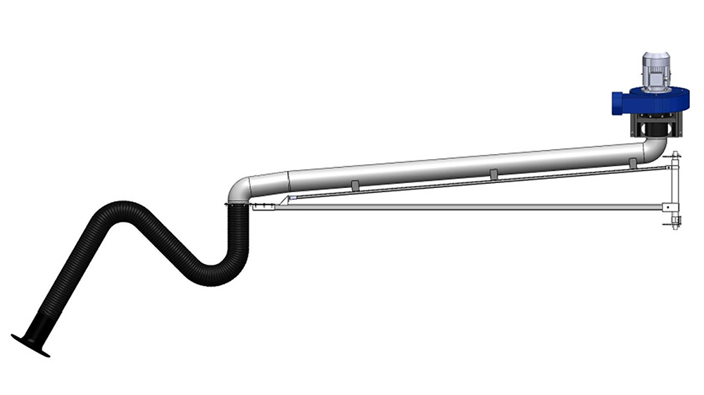 При использовании одного вентилятора на нескольких соседних рабочих местах, или работе над крупногабаритными изделиями, вентилятор дополняют удлиняющей консолью. Эта самонесущая конструкция монтируется вместе с вентилятором на стену, что позволяет удалять вредные вещества с большой площади. Таким образом, одна стационарная вытяжная система приобретает мобильность в пределах большого радиуса, обеспечивая универсальность применения. Технические характеристики