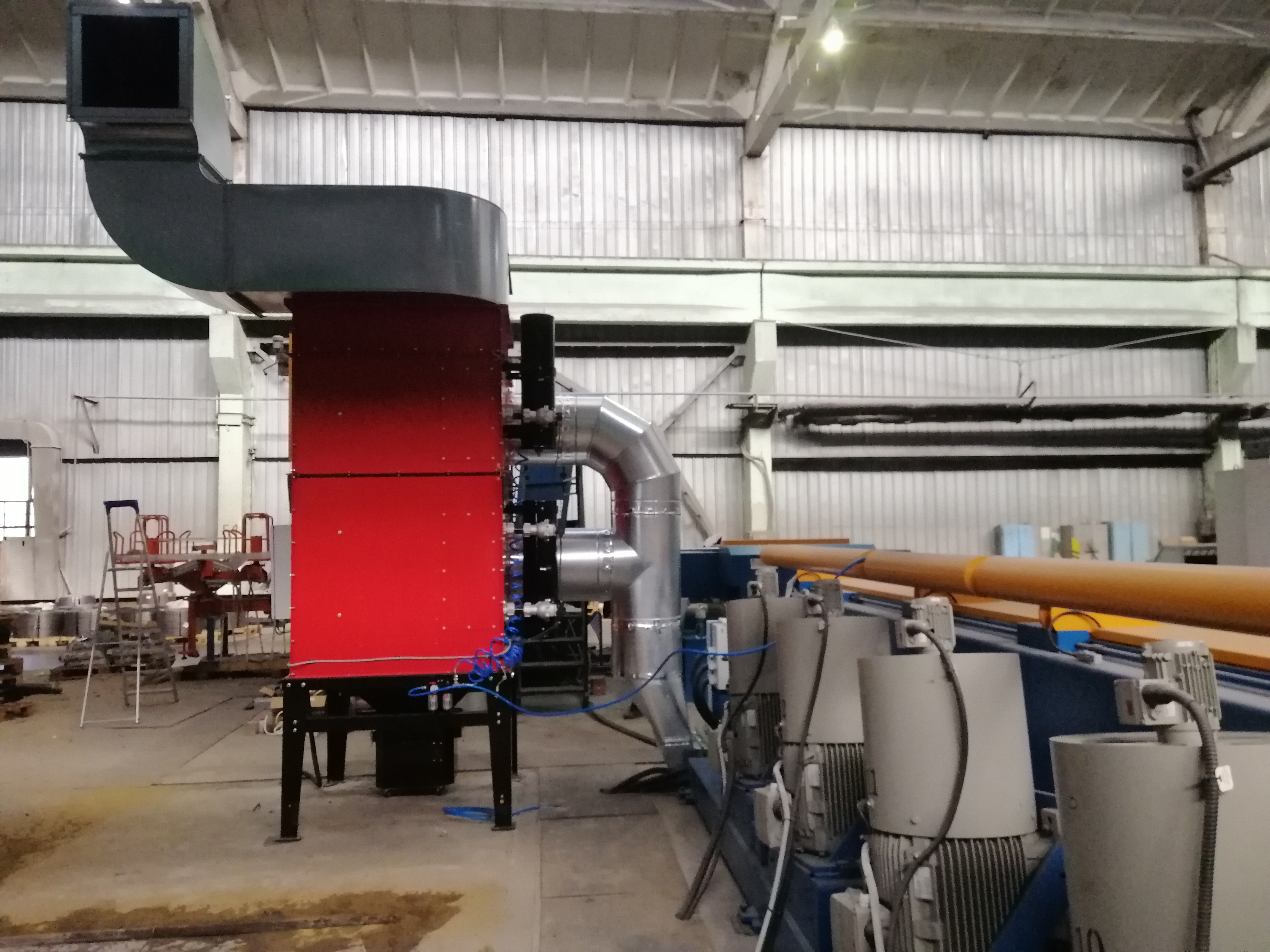 Появление данной пыли приводит к загрязнению редукторов и тяговых подшипников, что приводит к необходимости остановки оборудования для профилактических работ и, как следствие, к снижению выпуска продукции предприятия. Для выполнения мероприятий по обеспыливанию воздуха при технологическом процессе был осуществлен комплекс работ по поставке и ввода в эксплуатацию фильтровентиляционного оборудования, позволившего решить данную задачу. В июле компания выполнила работы по поставке фильтровентиляционного оборудования и комплектации волочильного стана системой аспирации. В качестве аспирационной системы была применена установка производительностью 10 000 м3/час.